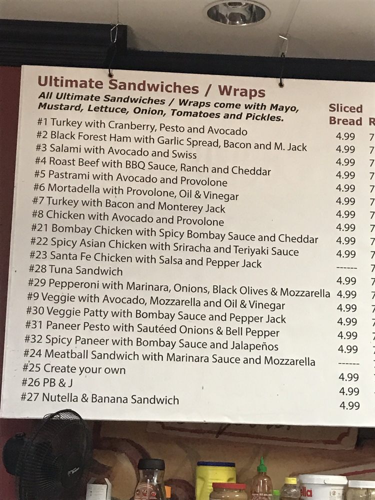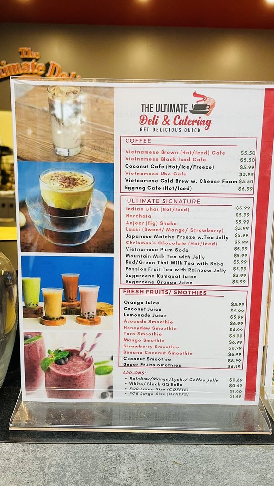The Ultimate Deli Cafe and Catering offers a diverse menu catering to Juice Bars & Smoothies, Halal options, and sandwiches. With amenities like delivery, takeout, and wheelchair accessibility, it caters to a wide range of customers. The Ultimate Sandwiches/Wraps and Creative Spin Sandwiches are highlights, with options like Roasted Turkey with Cranberry Sauce and Bombay Chicken with Spicy Bombay Sauce. Customers rave about the delicious food, cozy atmosphere, and friendly service. Reviews mention favorites like the BBQ sandwich, turkey bacon wrap, and refreshing drinks like the matcha latte and sugarcane juice. The restaurant's family-owned vibe and generous portions make it a must-visit for a satisfying dining experience.
